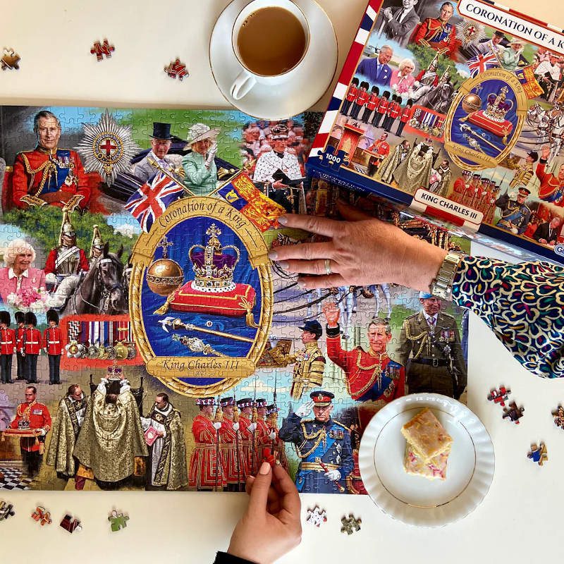This special 1000-piece collector’s edition jigsaw, illustrates all the tradition of the coronation, captured by freelance artist Victor McLindon. Beautifully made in Britain using 100% recycled board.